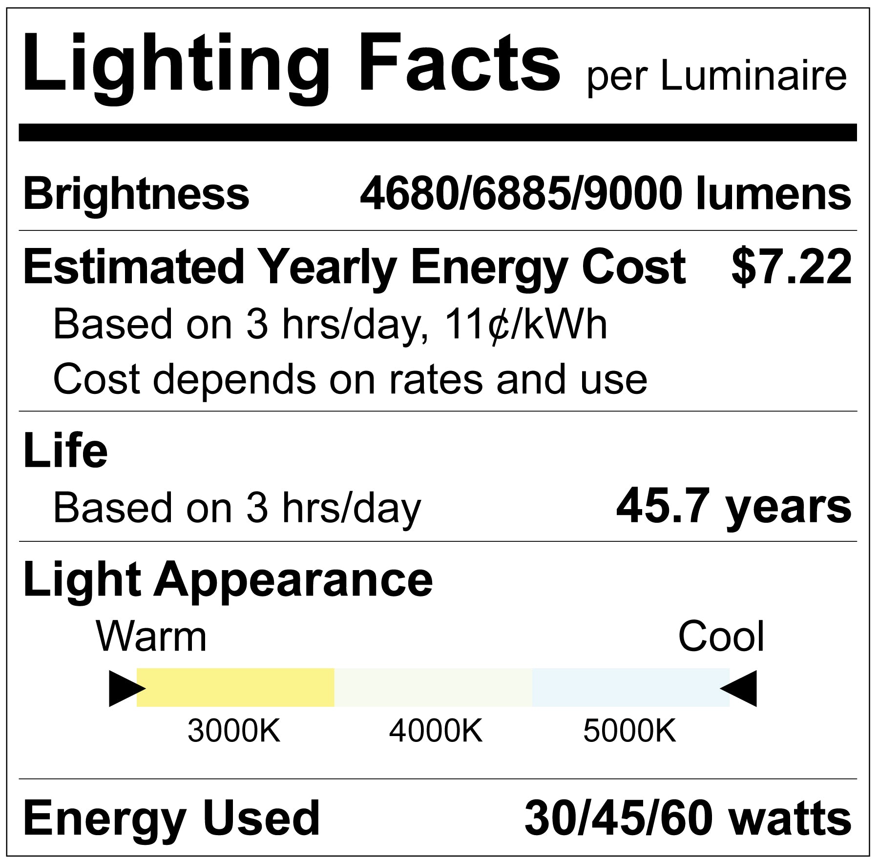 - Color (CCT) 3000K/4000K/5000K